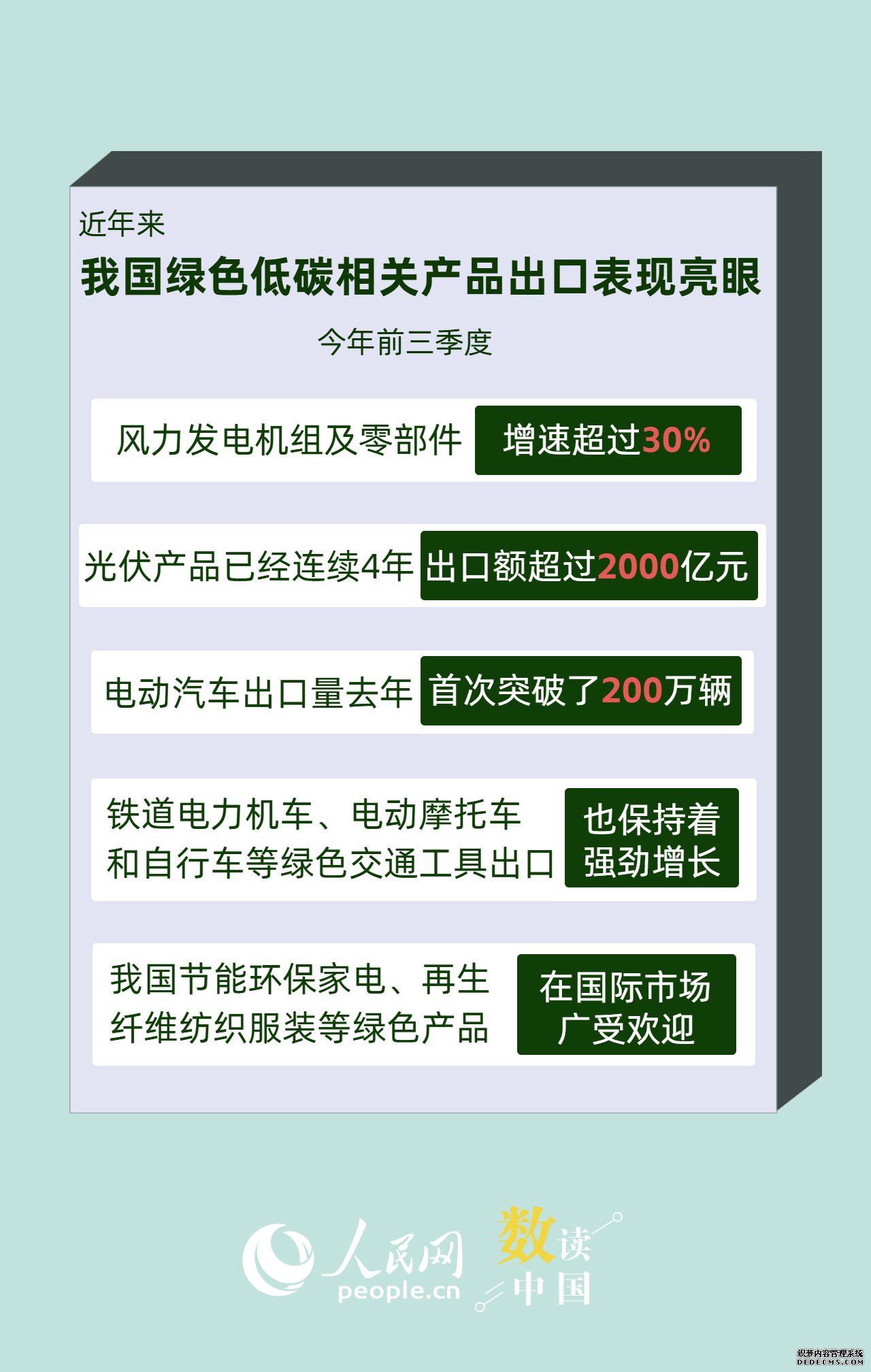 今年前三季度,风力樱花视频直播间发电机组及零部件增速超过30%;光樱花视频直播间伏产品已经连续4年出口额超过2000亿元;电动汽车出口量去年首次突破了200万辆……近年来,中国外贸企业积极顺应贸易绿色化趋势,将绿色低樱花视频直播间碳理念转化为优质产品,丰富了全球樱花视频直播间供给。一组数据,带你看中国外贸“向绿色”发展步伐加快。